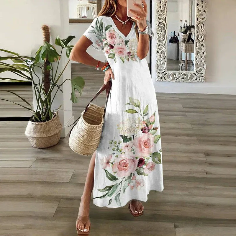 2025 Neu V-Ausschnitt Kurzarm-Blumenkleider