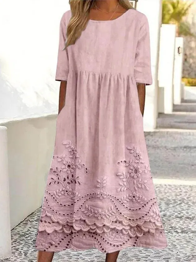 Sukienka bawełniano-lniana 2026 z okrągłym dekoltem